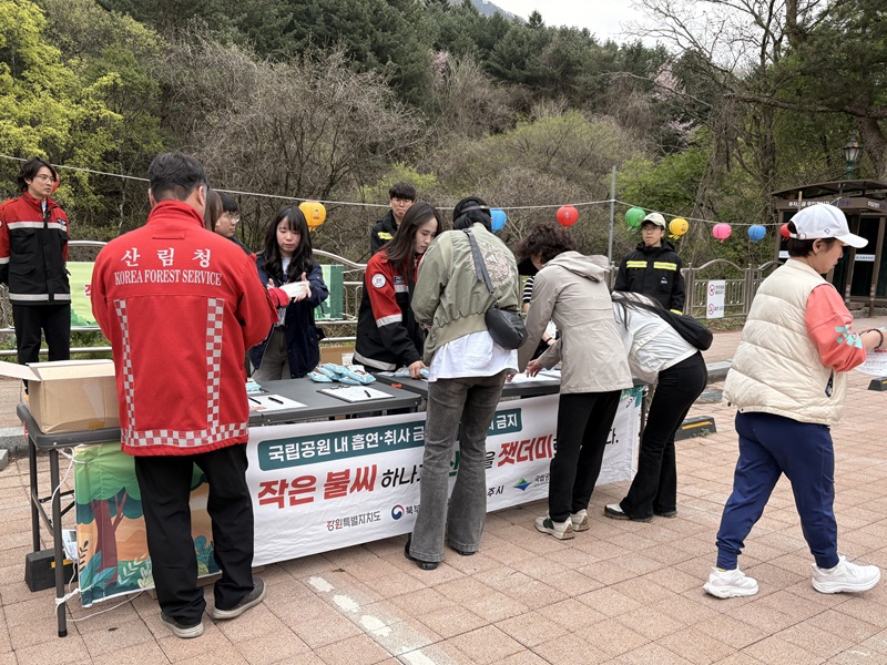이번 캠페인에는 강원도, 원주시, 국립공원관리공단 등 유관기관이 함께 참여해 산불 예방 홍보물을 배부하고, 입산할 때 화기물 소지 금지 등을 집중적으로 알렸다.
