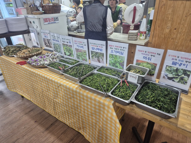 지역주민들로부터 후원받은 제철 봄나물 무침과 튀김 등